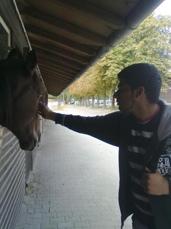 Nessim bei der Vor-Ort-Recherche in Mariendorf. Streichel-Einheit bei den Vierbeinern inklusive.