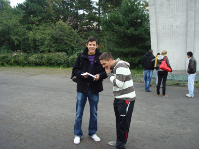 In der Literaturgruppe beginnen Kadir, Onur, Jordan, Jenny, Nadja und Boucif, angeregt und unterstützt von Markus, sich Gedanken über mögliche Texte und Geschichten aus und über Tempelhof zu machen. In der Videogruppe ist man sich schnell einig: der Flughafen Tempelhof wird in dieser Woche im Mittelpunkt der Arbeit stehen. Bis zu seiner Schließung 2008 war der Airport einer der drei großen Verkehrsflughäfen im Großraum Berlin. Erst in diesem Jahr wurde auf dem etwa 350 Hektar großen Areal der Tempelhofer Park eröffnet. Die Jugendlichen werden sich dort morgen mit der Kamera umsehen und Informationen sammeln. Begleitet werden sie dabei von Teresa, einer Praktikantin aus der "Kifrie"-Medienwerkstatt, und zwei "Kollegen" aus der Printjournalismus-Gruppe. Sie wollen am Mittwoch - thematisch ergänzend - auch einen Zeitzeugen zur Luftbrücke befragen.