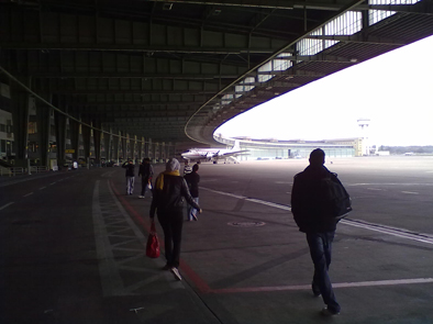Nach den Straßeninterviews begann die Führung über den Flughafen Tempelhof, die Mohammed Hassan mit der Kamera dokumentiert. Thomas Merz, der Stadtführer, berichtet jede Menge Details über den Airport, der am 8. Oktober 1923 eröffnet wurde. Die Rollbahn ist 7,3 Kilometer lang.