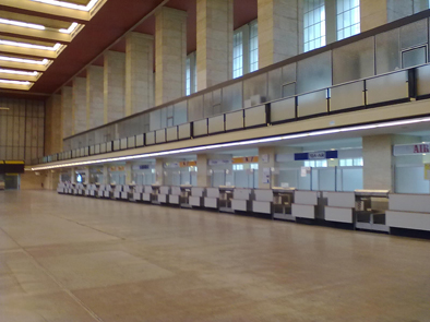Der Flughafen besitzt das größte freitragende Dach Europas. Neben dem Flugzeuggebäude gibt es Verwaltungsgebäude. Das Haus dient auch als Tribüne für 100.000 Menschen. Die Abfertigungshalle versprüht den Charme alter Zeiten.
