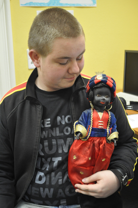Maik hat einen alten "Sarotti-Mohr" in die "Redaktion" mitgebracht.