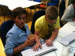 Dustin und Anthony beim Schreiben ihrer Geschichte.
